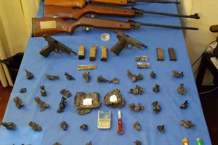 Los efectivos secuestraron una pistola calibre 9 milímetros con su numeración limada, 51 municiones del mismo calibre y varios cargadores, 3 rifles de aire comprimido con 30 balines de plomo, 12 cartuchos de escopeta y cargadores, una balanza de precisión, elementos de corte, una camioneta y un auto utilizados para hacer la entrega de los estupefacientes.