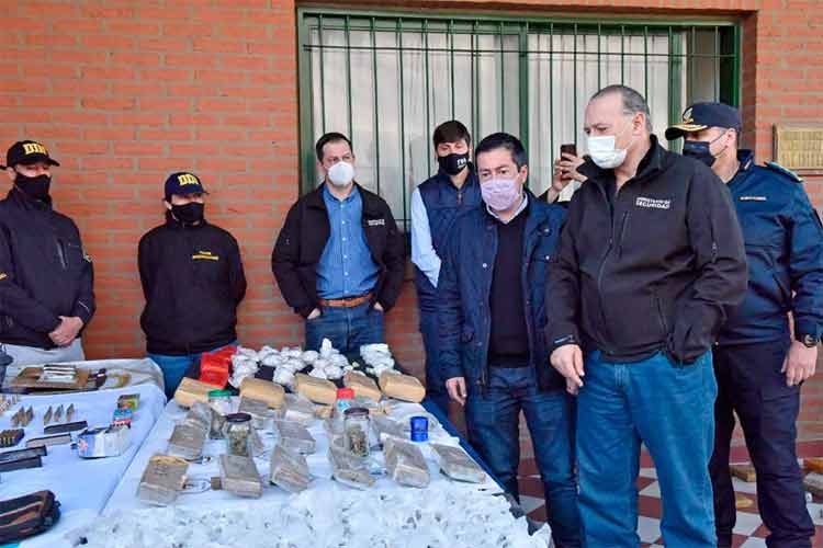 Durante esos allanamientos se incautaron: 20 kilos marihuana, cuatro de cocaína, 7.000 dosis de esa sustancia lista para la venta, una pistola calibre 9 milímetros, una calibre 40, dos revólveres y una carabina calibre 22 con supresor de ruido, todas las armas con numeración suprimidas.