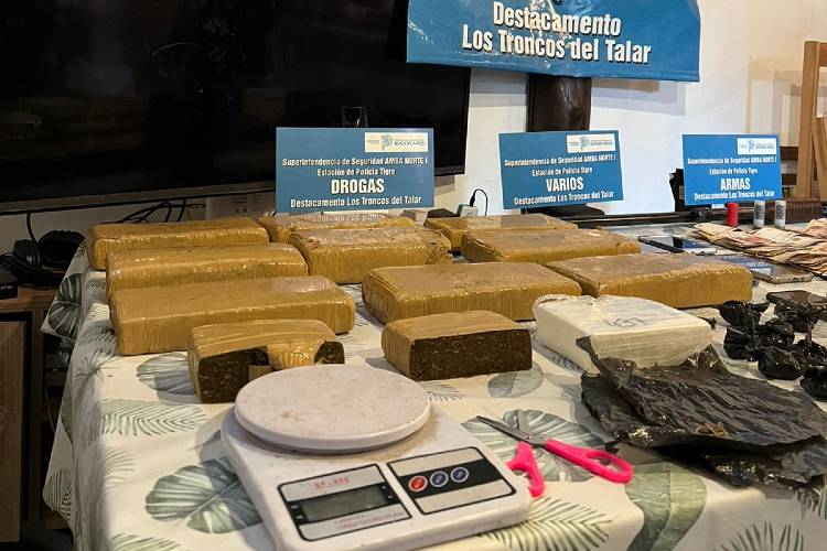 Los efectivos realizaron hoy un allanamiento en una casa ubicada en la calle Garibaldi al 1.400 de Rincón de Milberg, donde se detuvo a los sospechosos y se incautaron de medio kilo de cocaína; 9,5 de marihuana en panes y fragmentos; elementos de corte y una balanza de precisión.