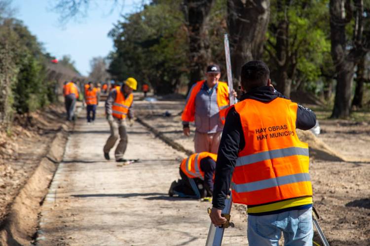 Actualmente, los trabajos se concentran en el reclamado, preparación y nivelación del terreno. Y comenzó la construcción de la senda aeróbica.