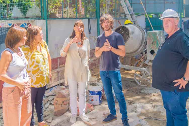 En su visita a las obras de renovación integral que el Municipio realiza en la Escuela Especial N°501, el Intendente Juan Andreotti estuvo acompañado por la Secretaria de Obras Públicas Cecilia Tucat, la Directora General de Obras Públicas Isabel Dumas y el Presidente del Consejo Escolar, Matías Del Federico.