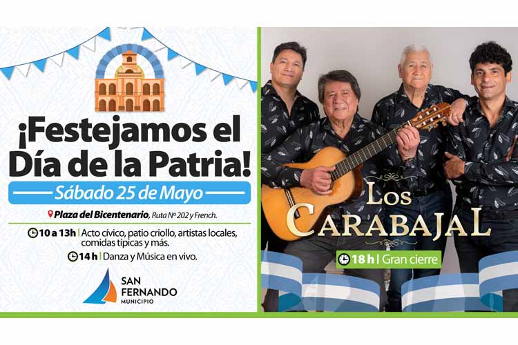 San Fernando se prepara para celebrar el 214° Aniversario de la Revolución de Mayo con un evento especial el próximo sábado 25 de mayo en la recientemente renovada Plaza del Bicentenario, ubicada en Ruta 202 y French. El Municipio invita a todos los vecinos y vecinas a participar de esta jornada festiva con entrada libre y gratuita.
