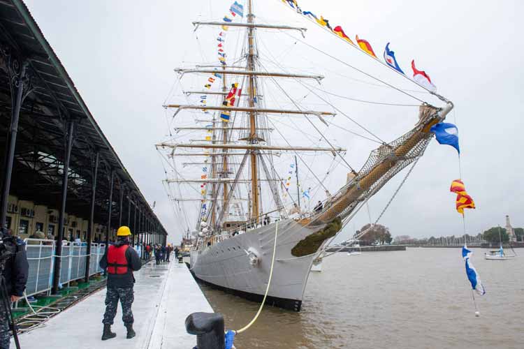 "Para mí es un honor y una emoción estar despidiendo a estos 303 tripulantes que durante estos 105 días atravesando 5 países y 7 puertos, no solamente van a recibir la instrucción final como guardiamarinas, sino que nos van a representar como verdaderos embajadores de la patria en cada puerto donde se encuentren", expresó Petri frente a la tripulación y sus familiares presentes.
