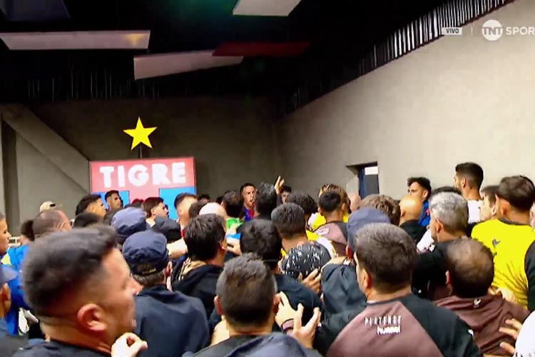 En la transmisión de TNT Sports Argentina, se mostró cómo varios futbolistas de Tigre comenzaron a congregarse de manera hostil contra la delegación de Platense, en un tumulto que obligó a la policía a intervenir, formando una barrera entre ambos equipos para evitar que la pelea pasara a mayores.