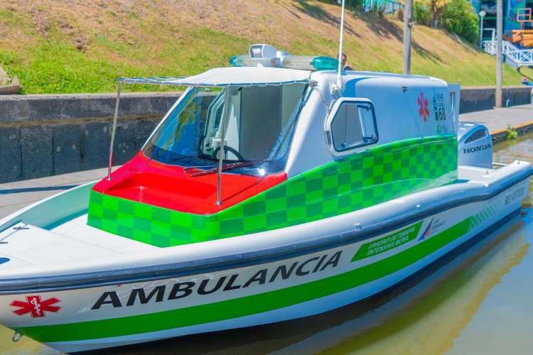 La embarcación presentada integra la flota municipal y fue especialmente preparada y equipada para esta función. Tiene un motor 4 tiempos Honda 225HP totalmente nuevo con una innovadora protección que permite un desembarco rápido del personal de salud incluso en condiciones desfavorables; en su interior se acondicionó una camilla y gabinetes para instrumentos médicos; incluye los elementos de seguridad correspondientes, balizamiento para emergencias, ecosonda digital y equipo de comunicación VHF.