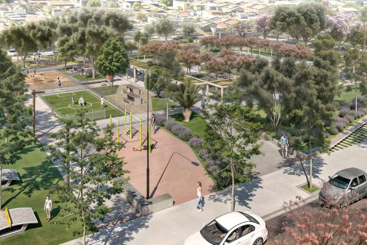 Otro de los ejes principales será la ampliación de la superficie verde, mediante la incorporación de césped, canteros y garden blocks, con el objetivo de mejorar la calidad ambiental y estética del lugar.