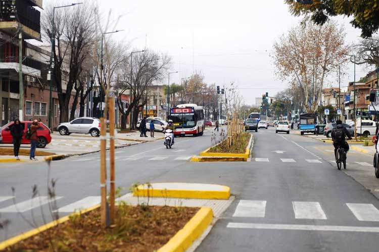 El nuevo boulevard central de dos metros de ancho separa los carriles vehiculares y, junto con la rotonda, contribuye a una circulación más segura y ordenada. La renovación abarcó unos 16.000 m² de veredas nuevas, beneficiando a 95 frentistas. También se sumaron separadores parquizados para el estacionamiento, semáforos peatonales y la plantación de 120 árboles, alcanzando un total de 175 ejemplares y nuevos canteros en la avenida.