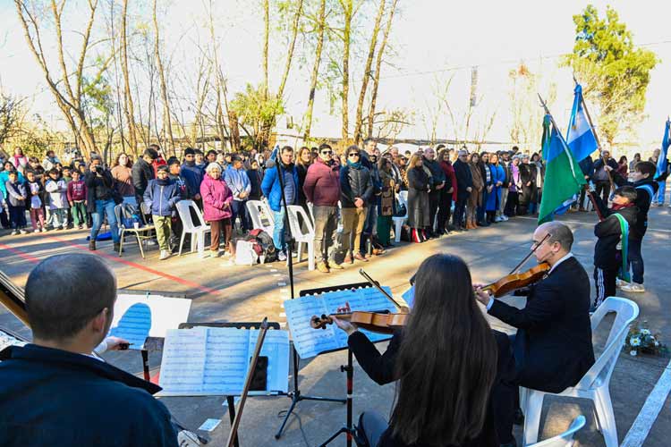 El acto comenzó con el descubrimiento de una placa conmemorativa que formalizó la imposición del nombre. A continuación, el cuarteto de cuerdas de Rincón de Milberg interpretó las estrofas del Himno Nacional Argentino, dando inicio oficial al evento.
